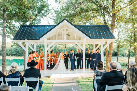 Two beautiful outdoor ceremony areas facing four-acre lake